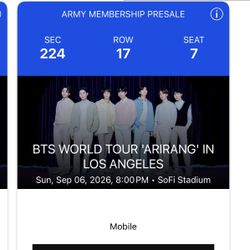Bts Concert Sunday 9/6/2026$1,000Chula Vista, CA