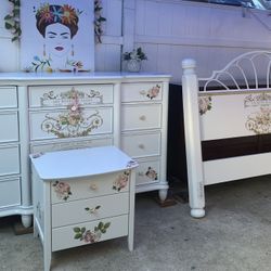 French Boho Style Solid Wood Queen Bedroom Set Colors White,pastels ,gold Metallic Set Has Been Refurbished!🌺$1,300San Diego, CA