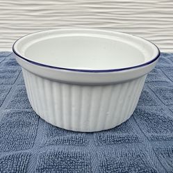 Vintage Ribbed BIA White Porcelain Casserole Souffle Dish Cobalt Trim$12San Diego, CA