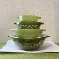 Vintage Pyrex Cinderella Mixing Bowls Spring Blossom Green 4 Piece Set Misprint$200San Diego, CA
