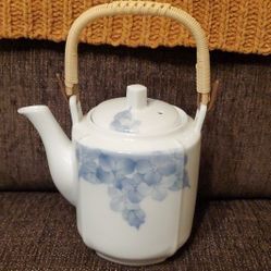 Vintage White Porcelain Teapot Arita Ware Blue Hydrangea Floral Handpainted $18Chula Vista, CA