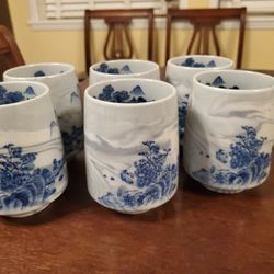 Vintage Otagari Handpainted Blue/White/Gray Set Of 6 Stackable Cups/Glasses$30Chula Vista, CA