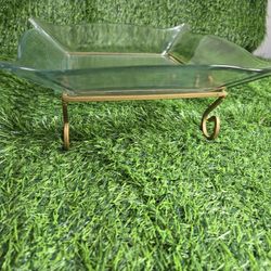 glass serving bowl with a gold metal scroll stand$15San Diego, CA