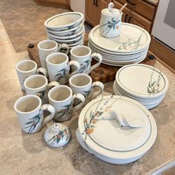 35pc Vintage Pottery Stonewear Dish Tablewear Dinnerwear Set Watercolor Leaf Hand Painted$350San Diego, CA