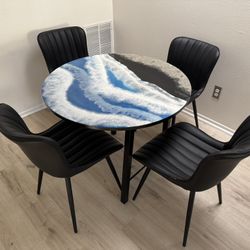 Custom Made Beach Ocean Coastal Epoxy Resin Dining Table with 4 Black Chairs$650Escondido, CA