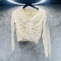 Womenβs Jessica Simpsons Ivory Hand Beaded Cardigan Sweater Size Small Flowers$15San Diego, CA