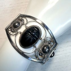Vintage Sterling Silver Carved Black Onyx Panel Bracelet$150Carlsbad, CA