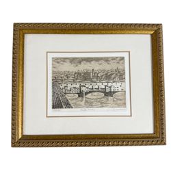 Vintage signed artist gold Framed Black and White Italian Florence Italy Cityscape Art Print limited edition Ponte Vecchio 156/795$250San Diego, CA