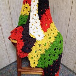 Mid Century Retro Vintage Handmade Crochet Afghan Throw Blanket Red, Gold & Green! 60"x72"🦎$30San Diego, CA