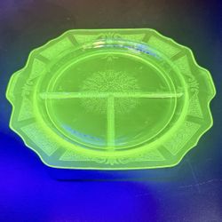 Anchor Hocking Princess Green Depression Glass Grill Plate 10.5” Uranium Glows, 4 available $18San Diego, CA