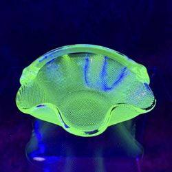 Vintage Murano Style Uranium Vaseline Glass 4”x2.5” Bowl Crosshatch Texture UV$17San Diego, CA