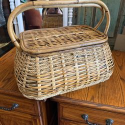 Vintage Mid Century Fabric Lining Bamboo Rope Picnic Basket$95San Diego, CA