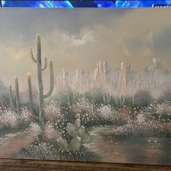 Canyon Desert Painting With Table Cactus Decor $50San Diego, CA