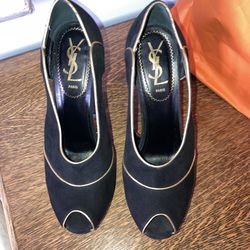 Yves Saint Laurent Black Suede Peep Toe Heels$200La Mesa, CA