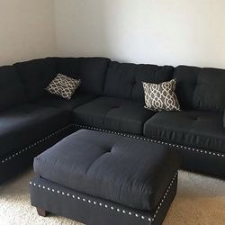 Black Fabric Sectional + Ottoman $580Chula Vista, CA