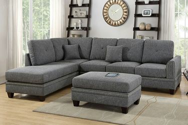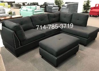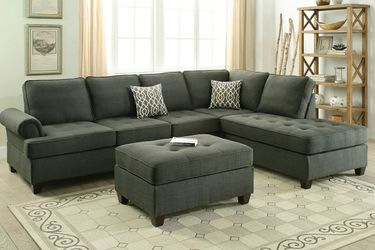 Brand new ash black linen reversible sectional + ottoman$499San Diego, CA