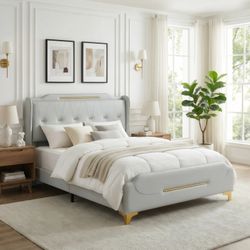 Queen/King Modern Bed – Soft Fabric + Solid Frame/ free local delivery$695San Diego, CA