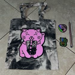 Tie Dye Cat Drinking Boba Tote Bag with Stickers and Metal Straw$15San Diego, CA
