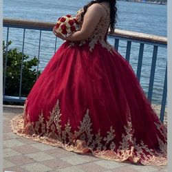 Beautiful Red And Gold Xv Dress $400San Diego, CA