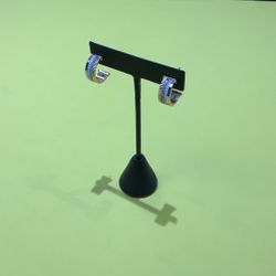 14k White Gold Diamond Stud Earrings Set with Double Halo Blue Round Stones & Princess Cut Diamonds 5.2 Grams$995Chula Vista, CA