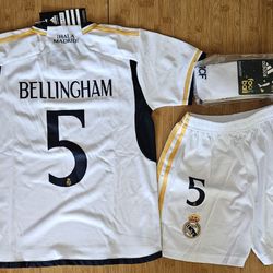 Real madrid soccer jersey white uniform kit set kids size