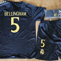 Real madrid soccer jersey black uniform kit set kids size
