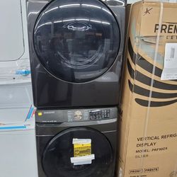 New Open Box Samsung Large Capacity 5.0cu Ft Front Load Washer And Stackable Electric Dryer Set 220volt $1,699El Cajon, CA