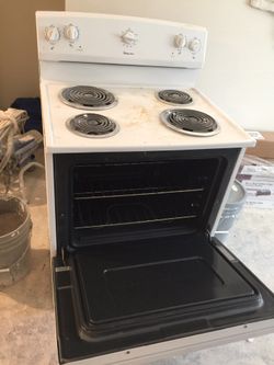 Electric range. White magic chef and hood.$25San Diego, CA