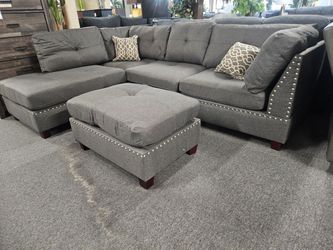 Brand new gray tufted linen reversible sectional + ottoman$799San Diego, CA