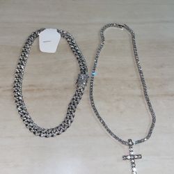 2 Pieces of Sparkling Ice Cuban Chain Miami Pendant Necklace for Men and Women $40El Cajon, CA