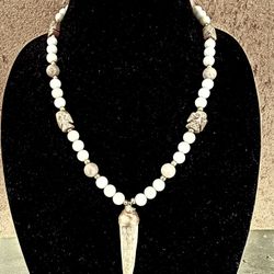 Natural Bone And Jade Beaded Necklace With Tooth Pendant$25Santee, CA