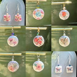 💙 Beautiful hand painted artwork with flowers in silver tone circle setting with glass dome - 2 styles$8Carlsbad, CA