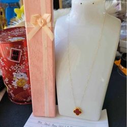 18K Pure Saudi Gold (AU750) Leafclover Red Centered Necklace (Lightweight) Size 16-18"-New$489Lincoln Acres, CA