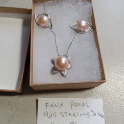 Faux Pink Pearl Sterling Silver Set Of Earrings And Pendant $45Lincoln Acres, CA