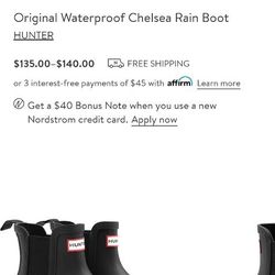 HUNTER RAINING BOOTS SZ 6$60Chula Vista, CA