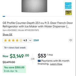 Samsung 32” 17.5 Cu Ft Capacity Refrigerator $1,299Lincoln Acres, CA