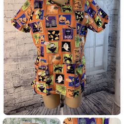 Scrubstar Women's Halloween Scrub Top SZ Medium Orange 100 % Cotton Pocket’s$10San Diego, CA