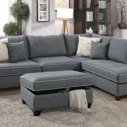 Brand New 92" × 60" Gray Or Brown Linen Reversible Sectional With Storage Chaise And Pullout Bed$699San Diego, CA
