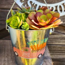 Succulent Arrangement In Hand Painted Metal Bucket$100San Diego, CA