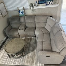 Living Room Couch Power Recliner With Two USB Ports, 3 Reclining Chairs, Center Console Storage With 2 Round Tables And Area Rug $800Poway, CA