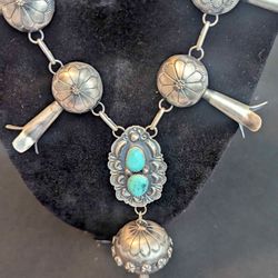 Authentic Signed Navajo Sterling Silver & Turquoise Necklace โ Tim Bossman Yazzie$600Chula Vista, CA