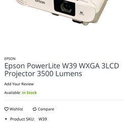 Epson Projector Powerlite W39 3500 Lumens$460El Monte, CA