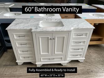 60" Bathroom Vanity with Carrara Marble Countertop & Solid Wood & Plywood Cabinet #3030$600Lawndale, CA