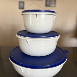 Vintage 90’s Tupperware Speckled Bowl Set w/ Blue Lids (Set of 3) $10Chino, CA
