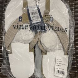 VINEYARD VINES Washed Webbing Leather Flip Flops KHAKI Men’s Size 10$24Cypress, CA