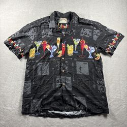 Vintage Paradise Found Hawaiian Aloha Shirt Men 2XL Black Drinks Happy Hour#1738$25Long Beach, CA