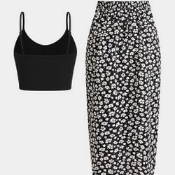 Women's Crop Cami Top & Ditsy Floral Print Asymmetrical Twist Skirt Set Size XL$20Whittier, CA