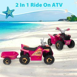 TOBBI Kids ATV, 6V 4 Wheeler Electric Quad Car Ride on Toys with Trailer, Bluetooth, Music, Horn, Pink, NEW