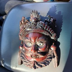 VINTAGE CHINESE ROSEWOOD HAND CARVED WARRIOR WALL HANGING MASK ZHANG FEI 10" $80Los Angeles, CA