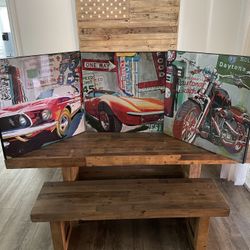 Motorcycle/Mustang/Corvette car vehicle retro art themed high-quality and heavy canvas prints (27” x 27” x 2”) from ZGallerie. Price for all, togethe$50Yorba Linda, CA